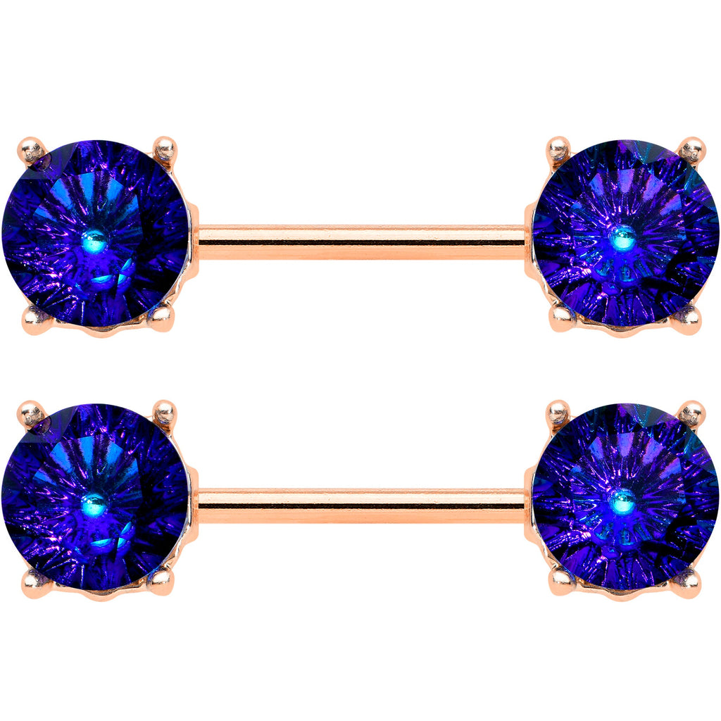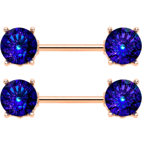 14G 9/16 Blue Gem Rose Gold Tone Simply Elegant Nipple Ring Set