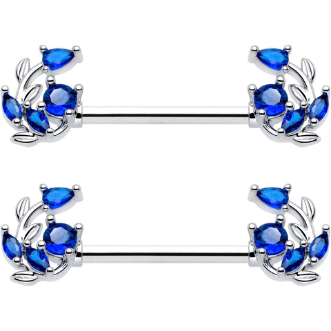 14 Gauge 9/16 Blue Gem Twining Vine Barbell Nipple Ring Set