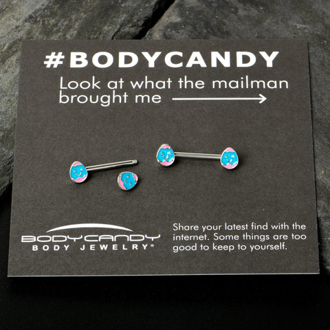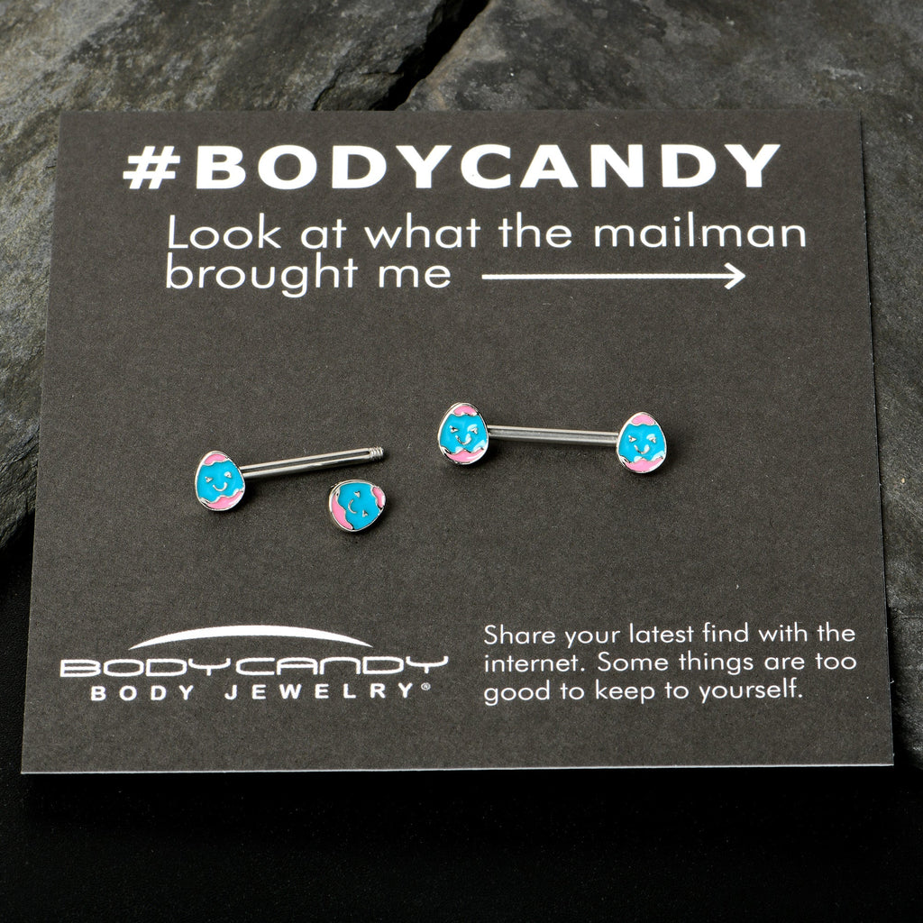 14 Gauge 9/16 Blue Pink Celebration Easter Egg Barbell Nipple Ring Set