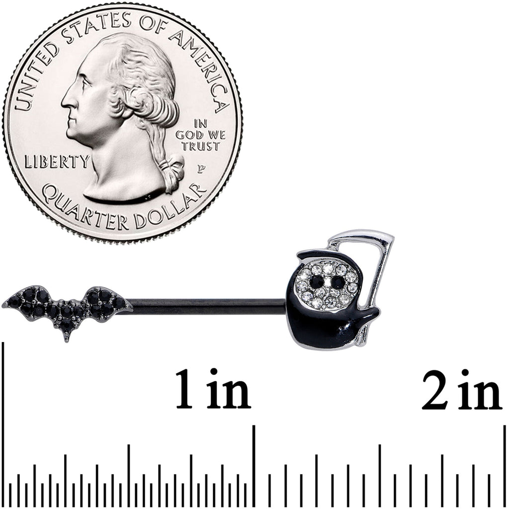 14 Gauge 9/16 Clear Black Gem Grim Reaper Bat Barbell Nipple Ring Set