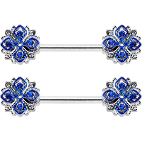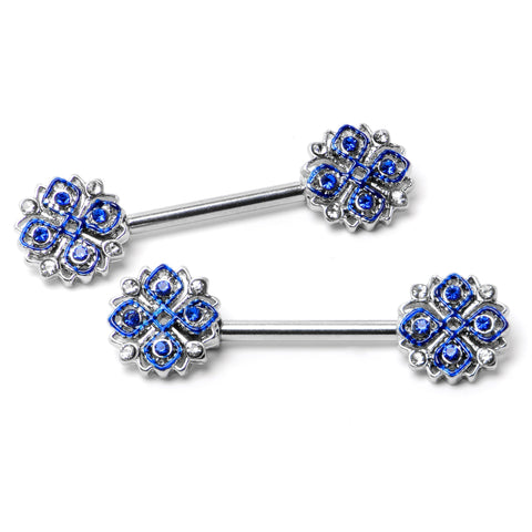 14 Gauge 9/16 Clear Blue Gem Embellished Cross Barbell Nipple Ring Set