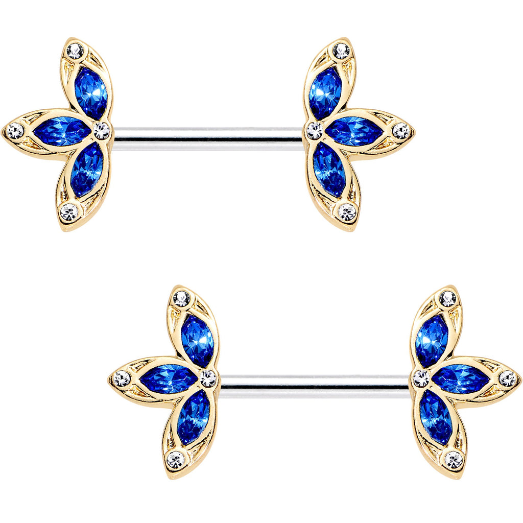 14 Gauge 9/16" Clear Blue Gem Fleur de Seins Barbell Nipple Ring Set