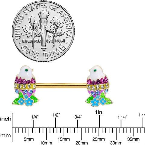14 Gauge 9/16 Clear Blue Gem Gold Tone Easter Chick Nipple Ring Set