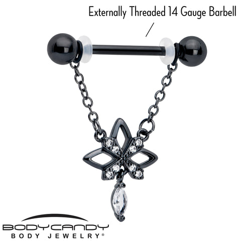 14 Gauge 9/16 Clear CZ Gem Black Gothic Star Dangle Nipple Ring Set