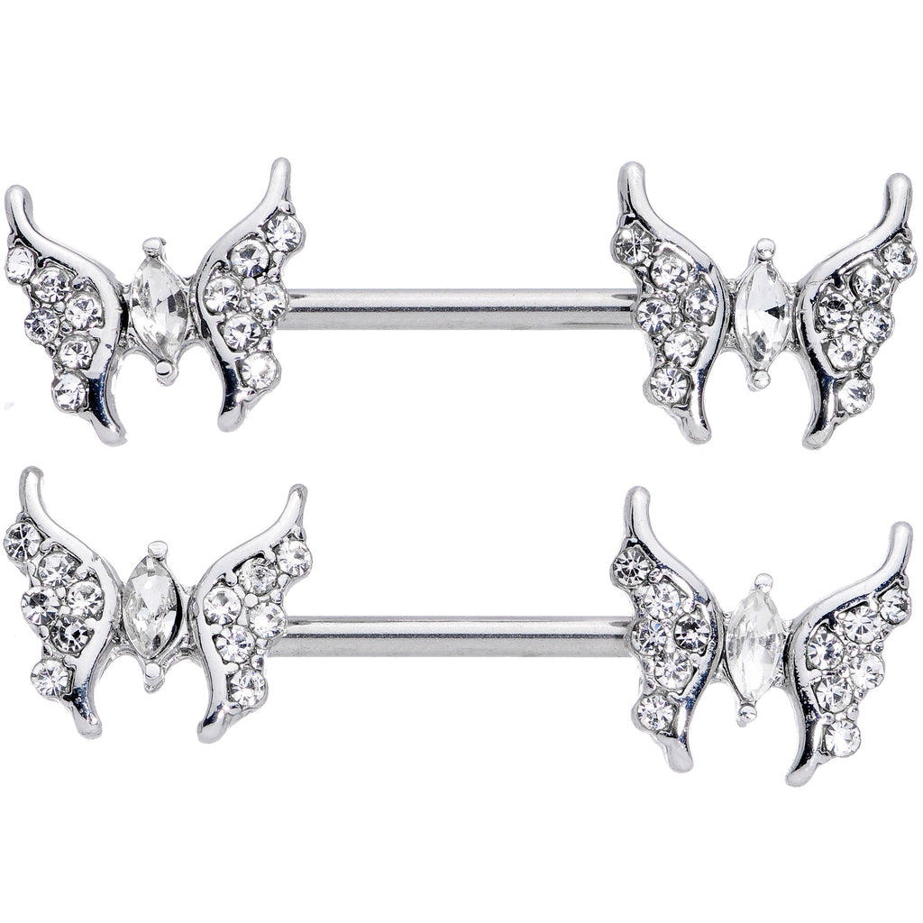 14 Gauge 9/16 Clear CZ Gem Drama Butterfly Barbell Nipple Ring Set