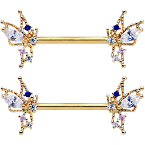 14 Gauge 9/16 Clear CZ Gem Gold Tone Christmas Angel Nipple Ring Set