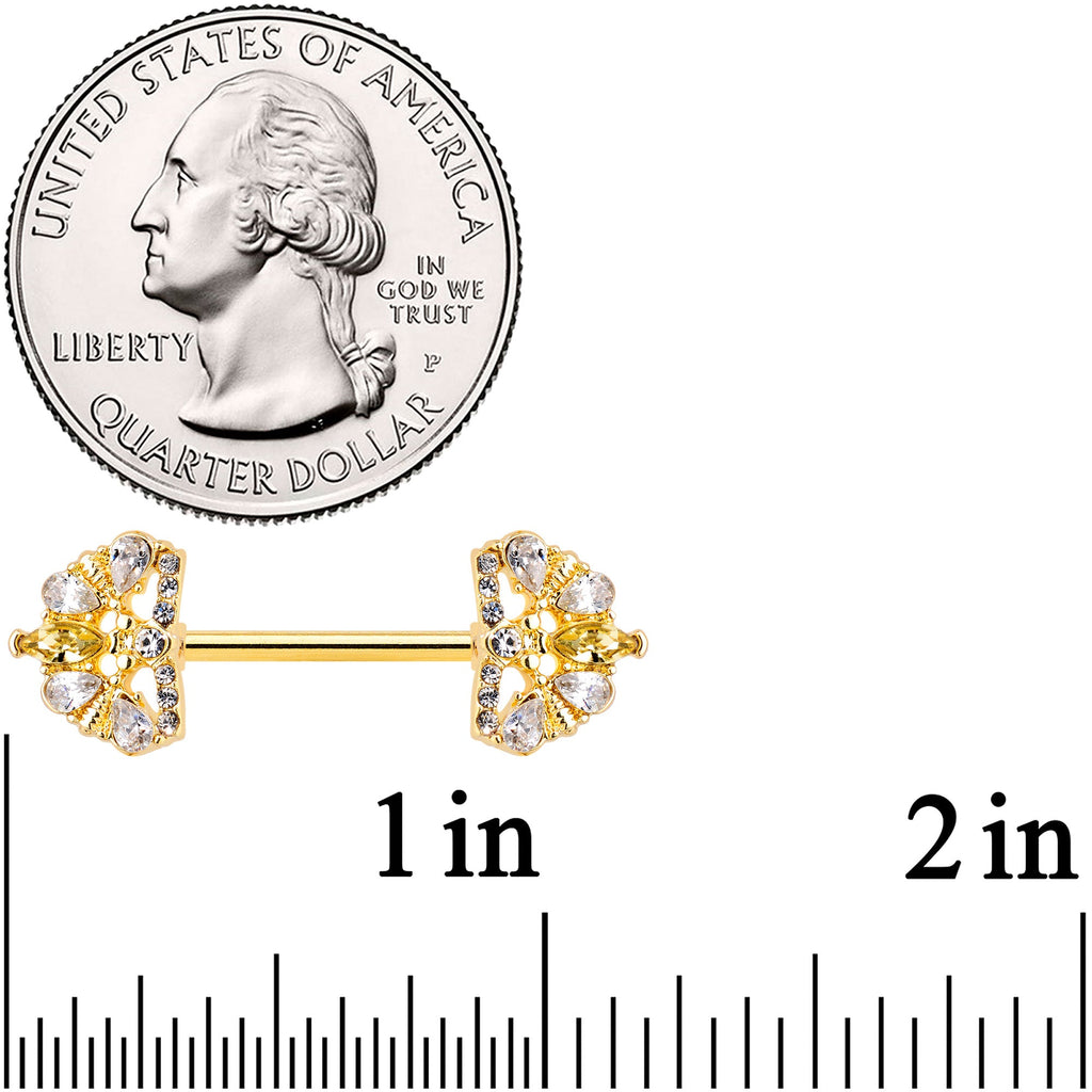 14 Gauge 9/16 Clear CZ Gem Gold Tone Lavish Crown Nipple Ring Set