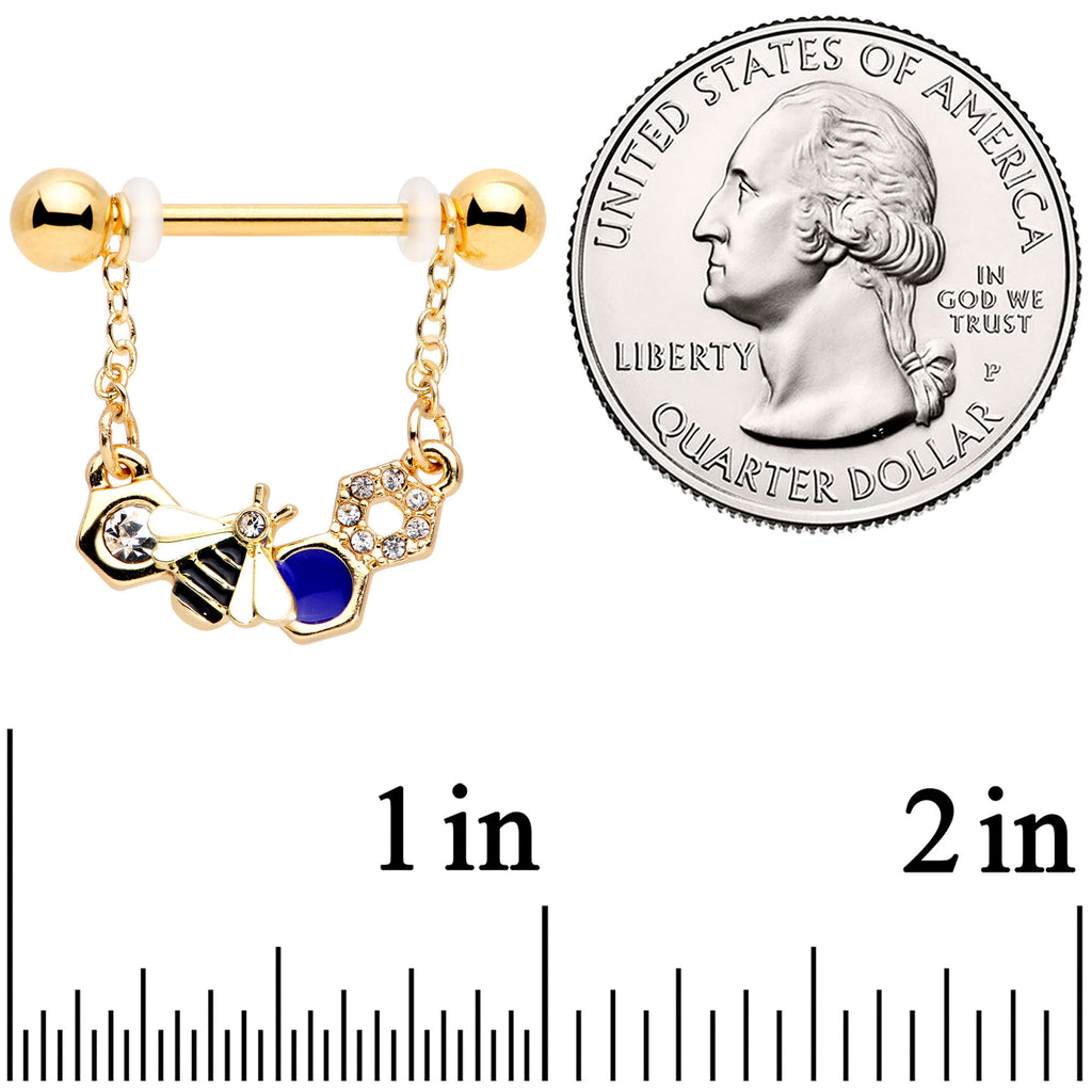 14 Gauge 9/16 Clear CZ Gem Gold Tone Lovely Bee Dangle Nipple Ring Set