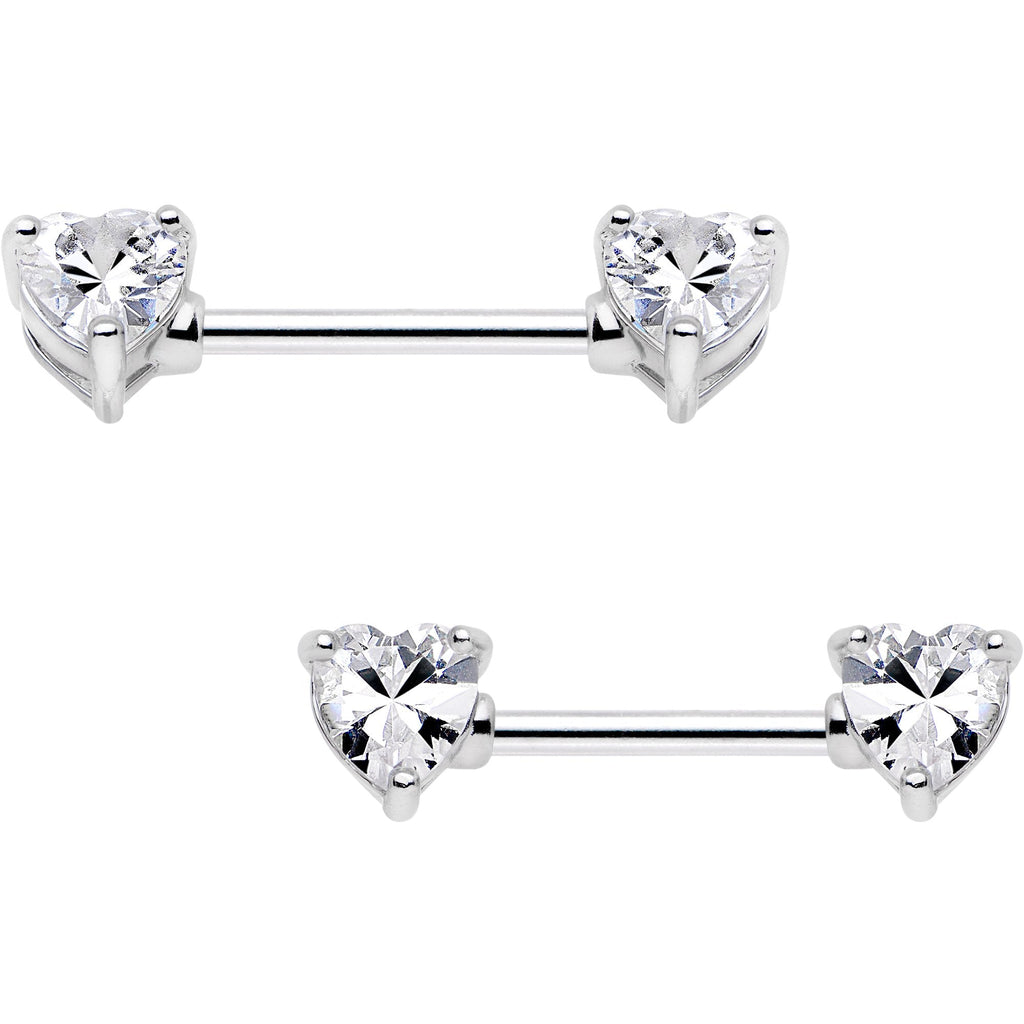 Show off your love of simple style when you wear this pair of pretty 14 gauge nipple rings. Made from 14mm durable 316L stainless steel straight barbells, these nipple piercings feature clear accent heart ball ends and are sold as a set of two for you!