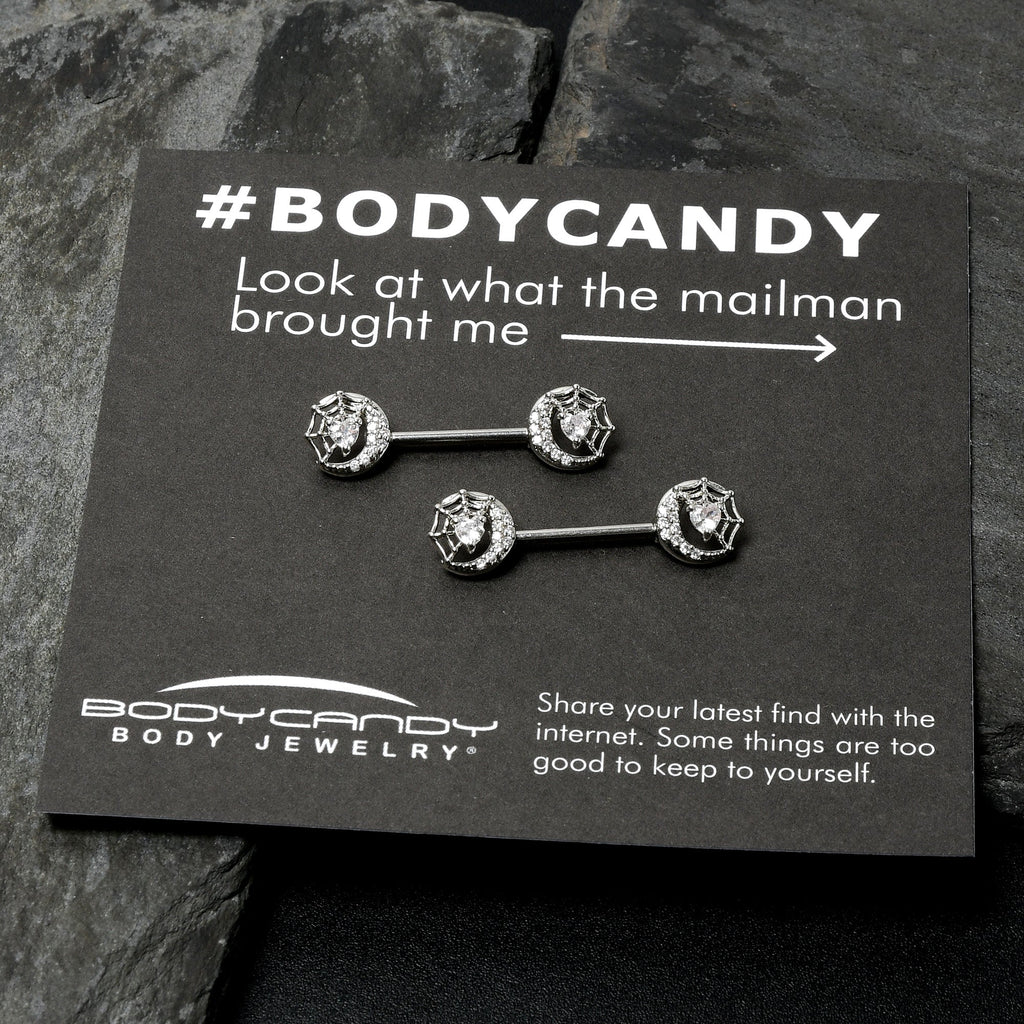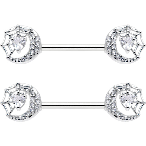 14G 9/16 Clear CZ Gem Heart Web Moon Barbell Nipple Ring Set