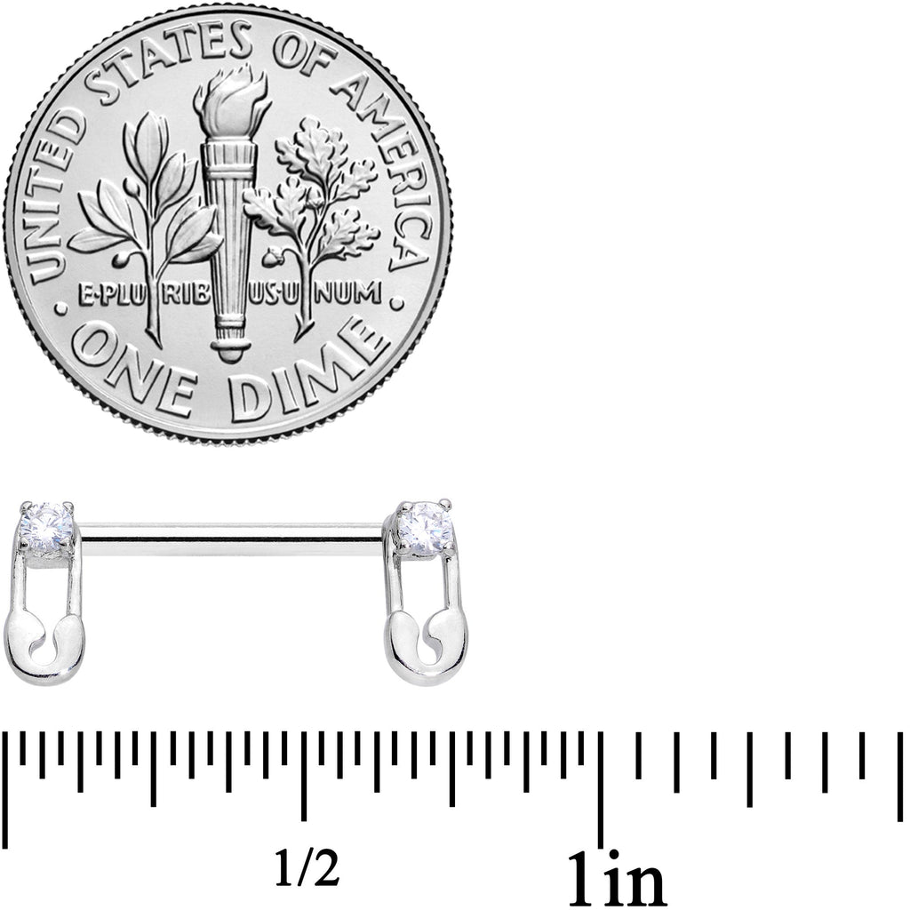 14G 9/16 Clear CZ Gem Punk Safety Pin Barbell Nipple Ring Set