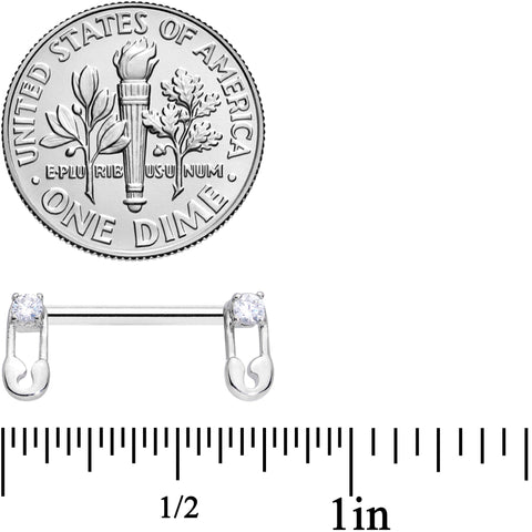 14 Gauge 9/16 Clear CZ Gem Punk Safety Pin Barbell Nipple Ring Set