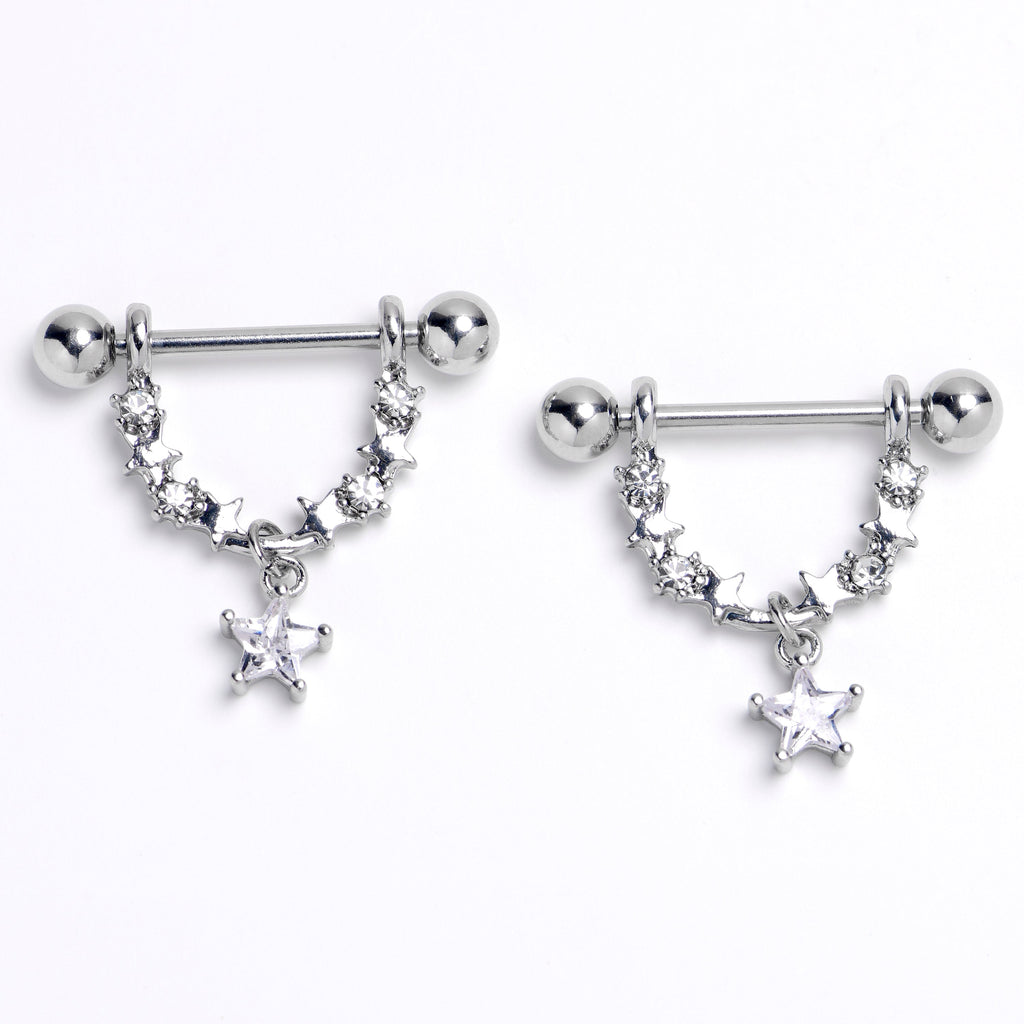 14 Gauge 9/16 Clear Gem All The Stars Dangle Nipple Ring Set