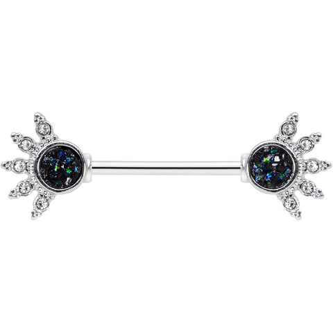 14 Gauge 9/16 Clear Gem Blue Faux Druzy Crest Barbell Nipple Ring Set
