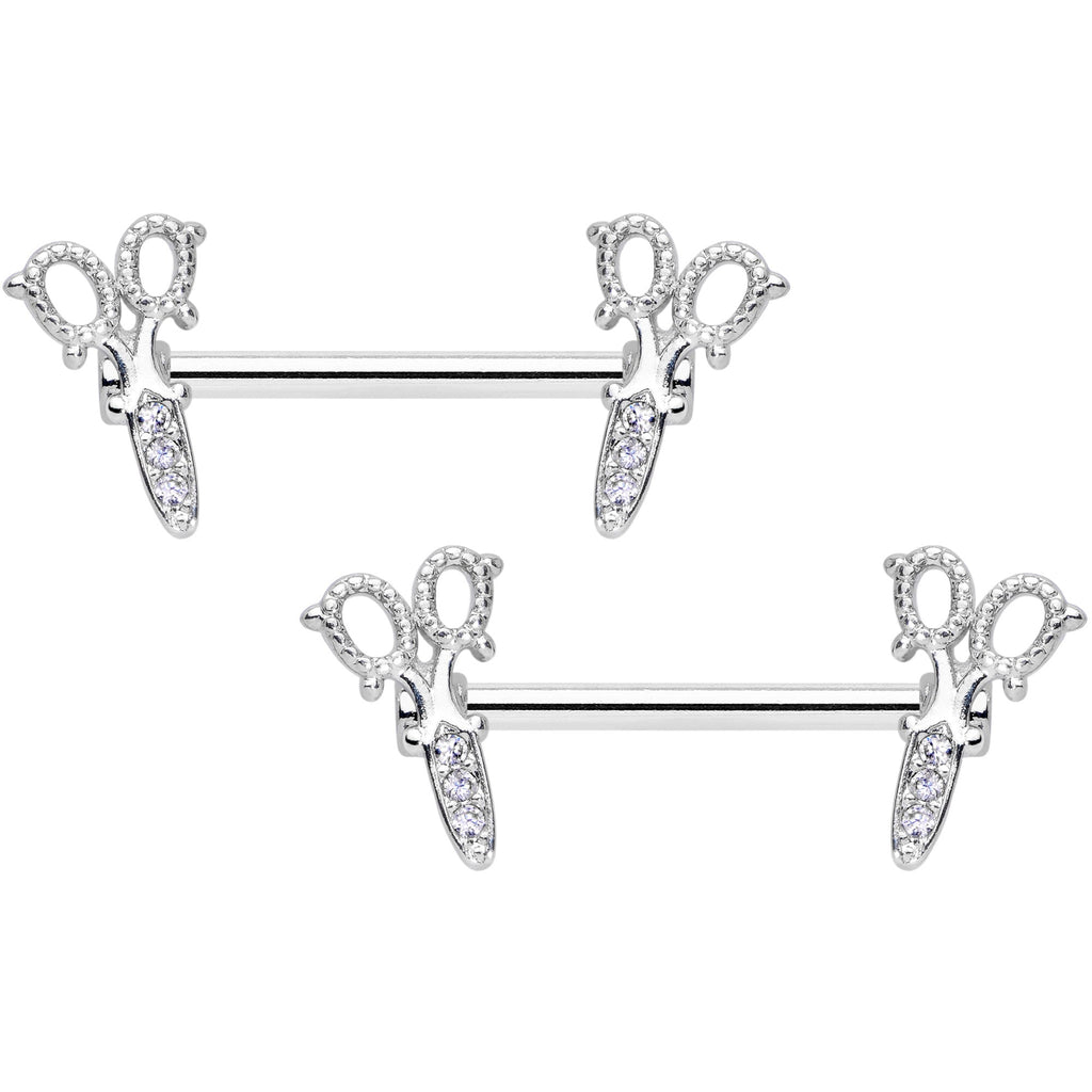 14G 9/16 Clear Gem Elegant Scissors Barbell Nipple Ring Set
