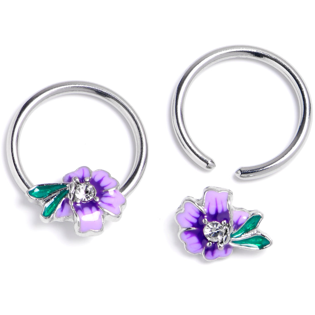 14G 9/16 Clear Gem Faerie Flower Purple BCR Captive Ring Set