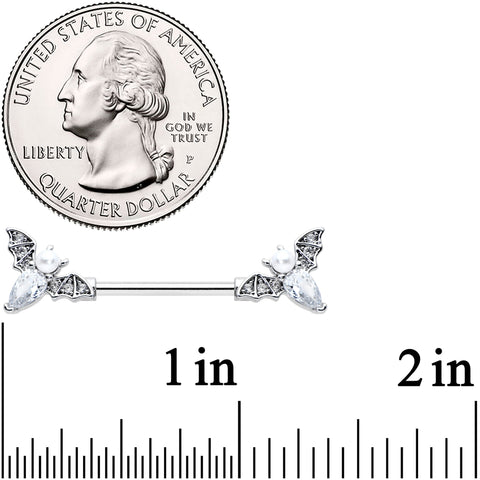 14 Gauge 9/16 Clear Gem Flying Bats Halloween Barbell Nipple Ring Set