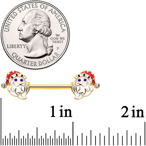 14 Gauge 9/16 Clear Gem Gold Hue Happy Santa Christmas Nipple Ring Set