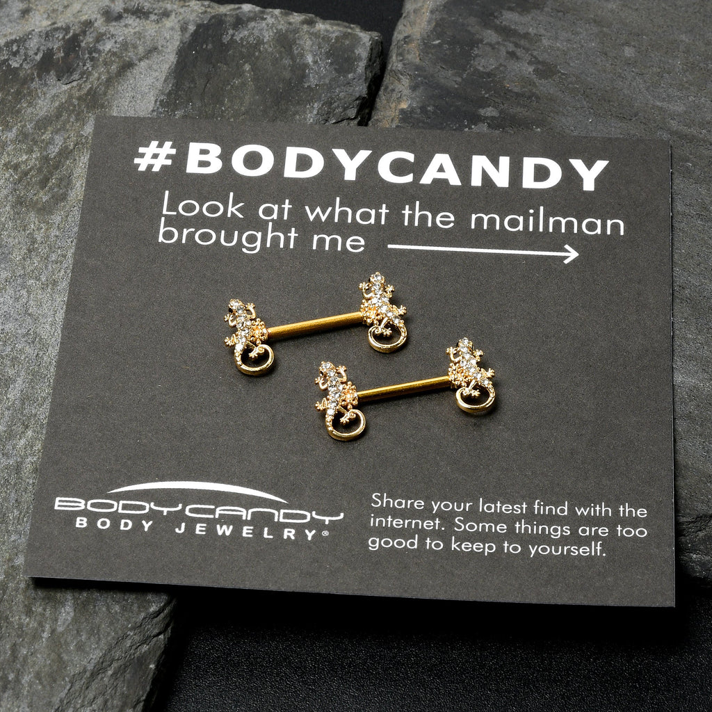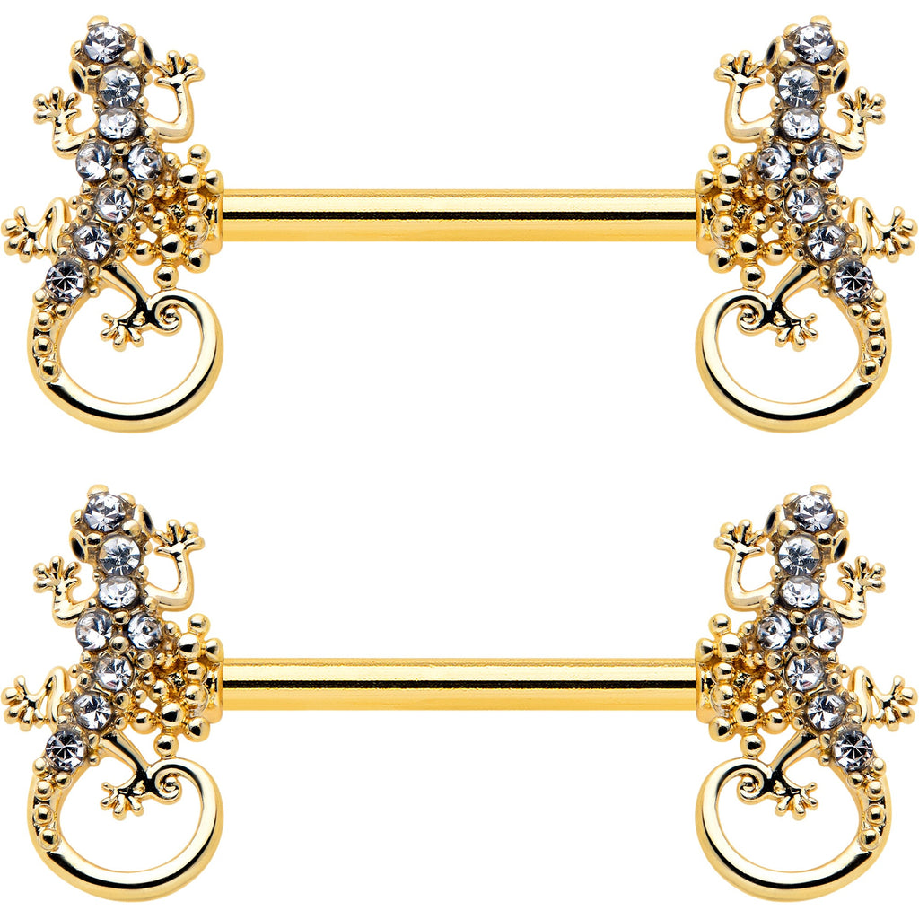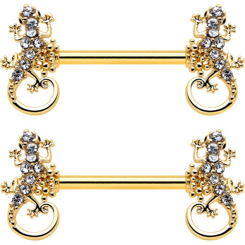 14G 9/16 Clear Gem Gold Hue Luscious Lizard Barbell Nipple Ring Set