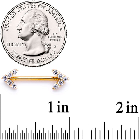 14 Gauge 9/16" Clear Gem Gold Tone Arrows Barbell Nipple Ring Set