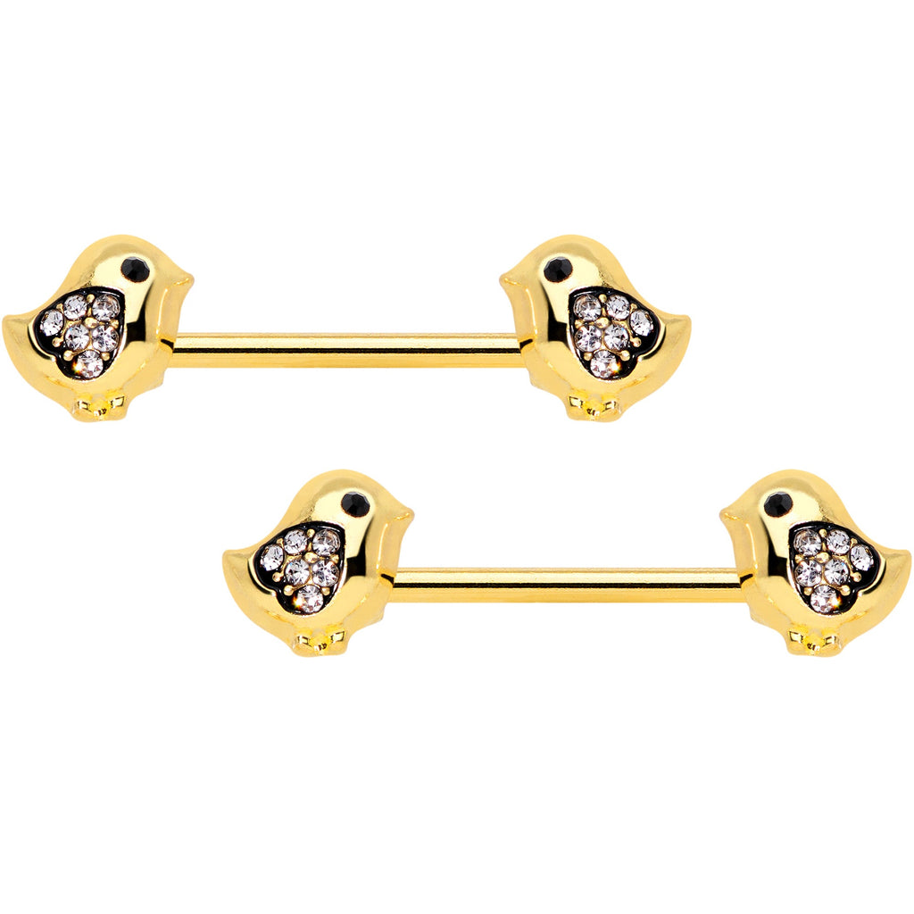 14G 9/16 Clear Gem Gold Tone Easter Chick Nipple Ring Set