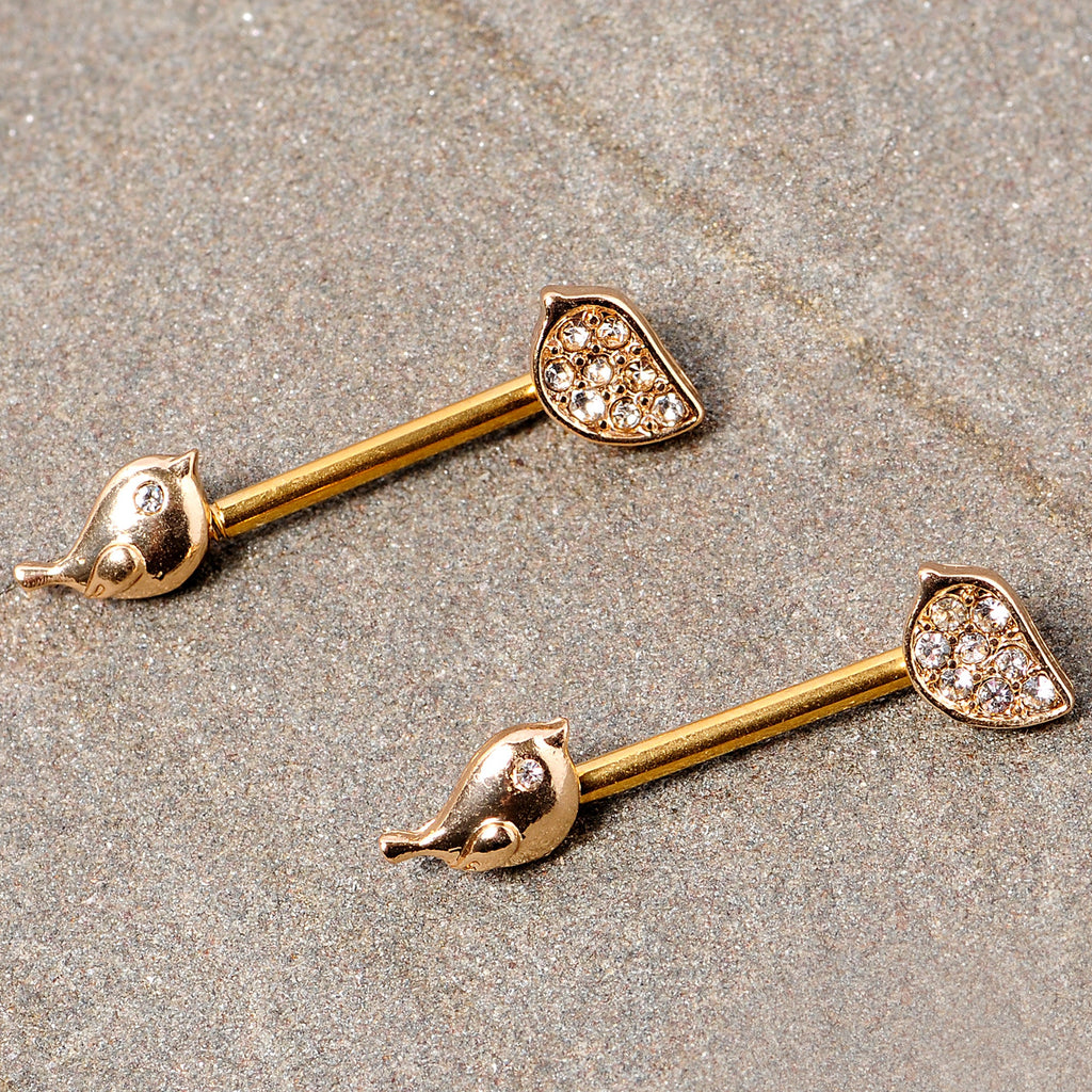 14G 9/16 Clear Gem Gold Tone Little Birds Barbell Nipple Ring Set