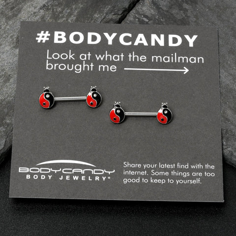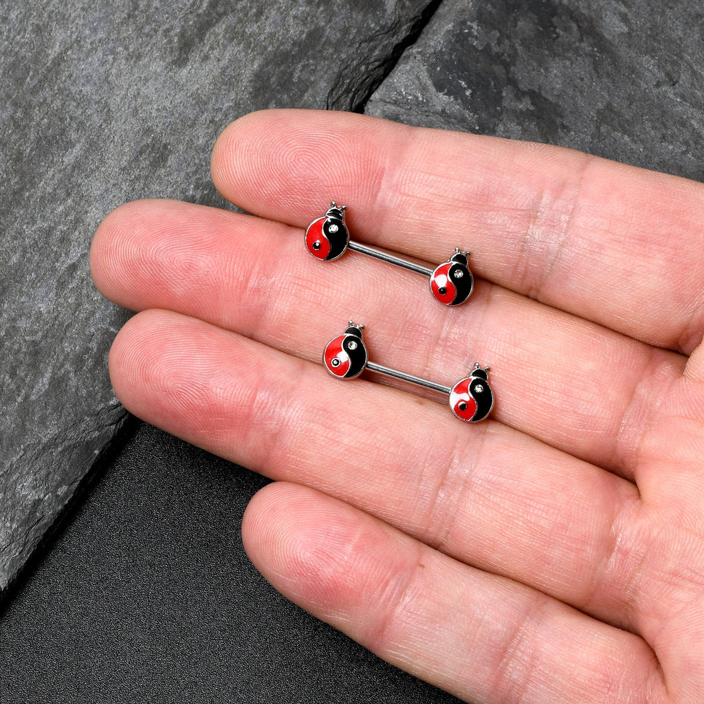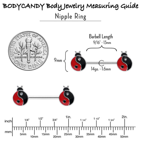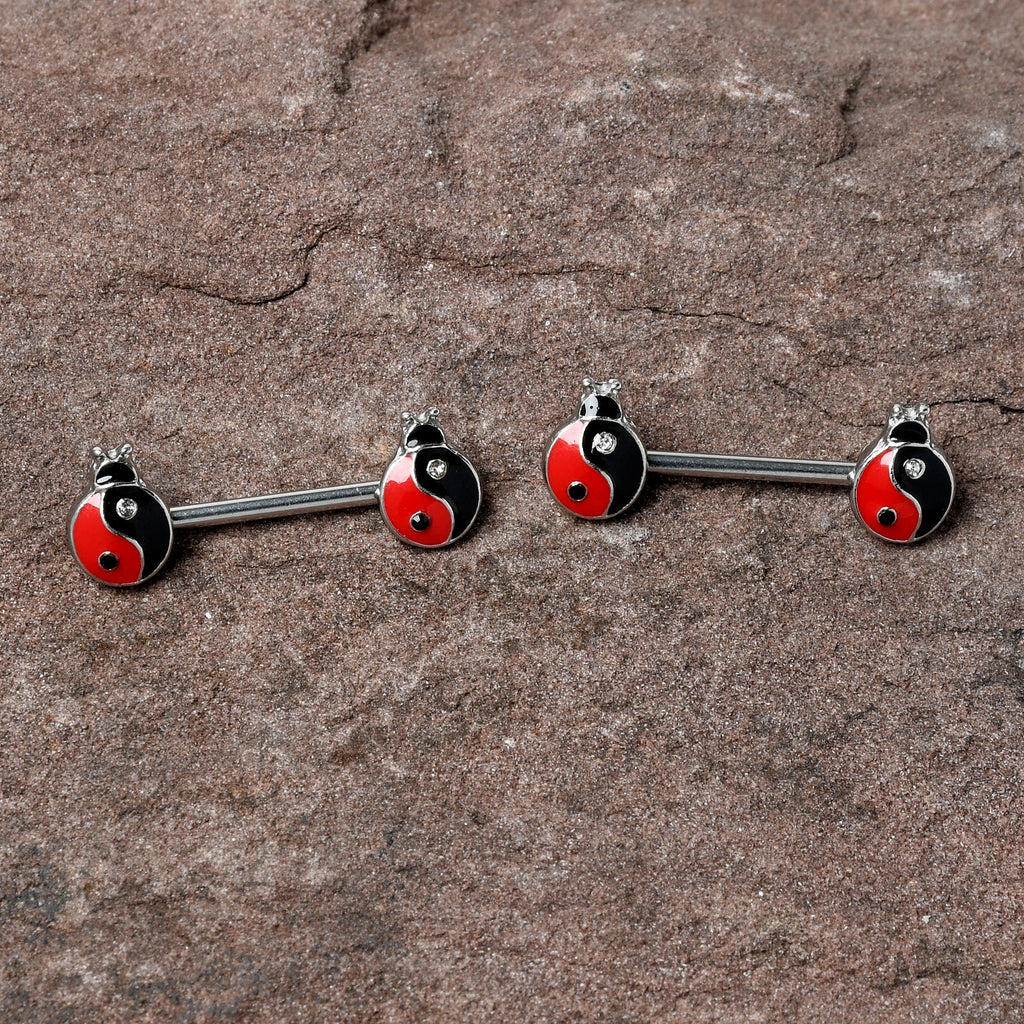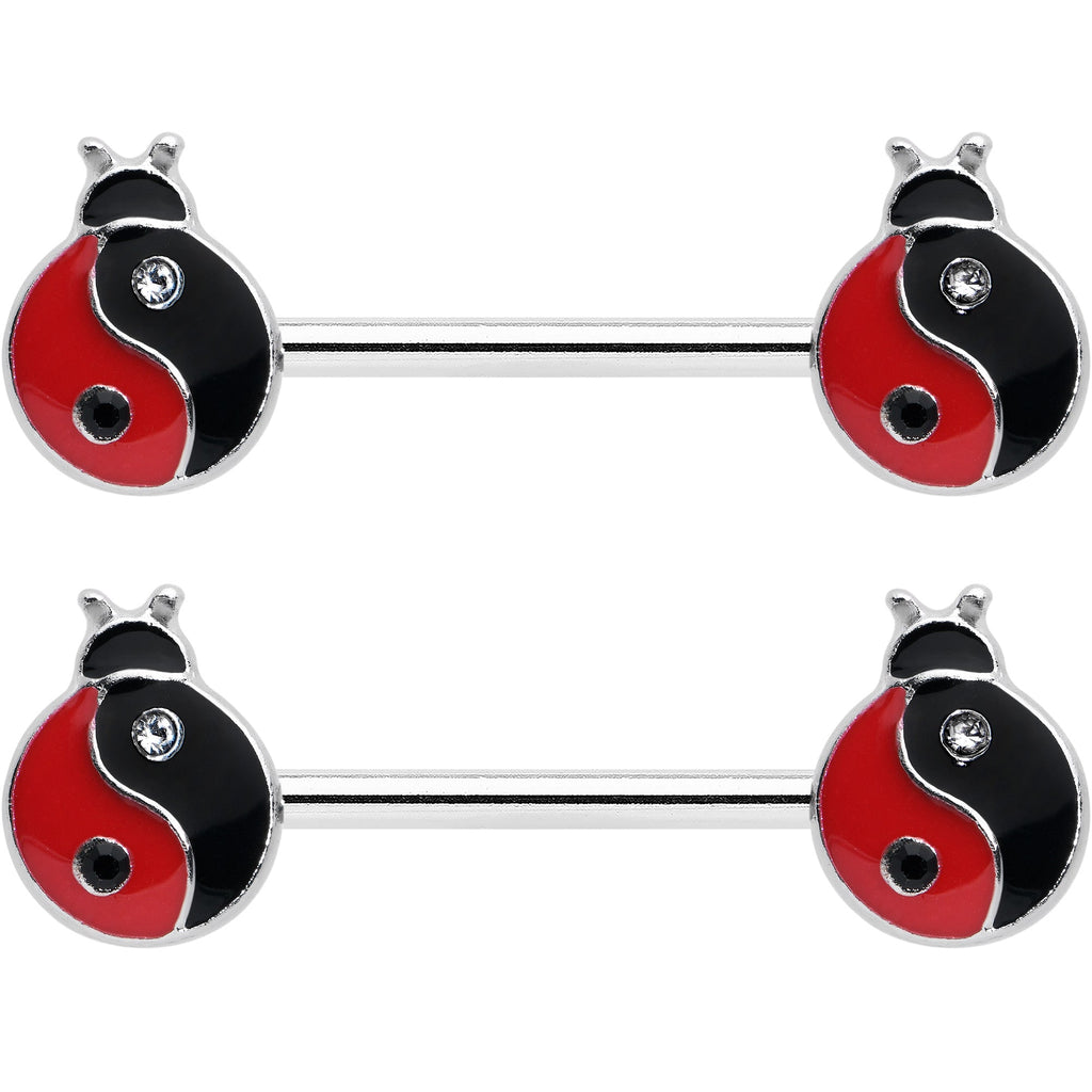 14 Gauge 9/16 Clear Gem Ladybug Yin Yang Barbell Nipple Ring Set
