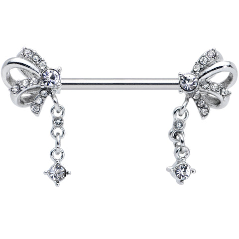 14 Gauge 9/16 Clear Gem Looping Bow Dangle Barbell Nipple Ring Set
