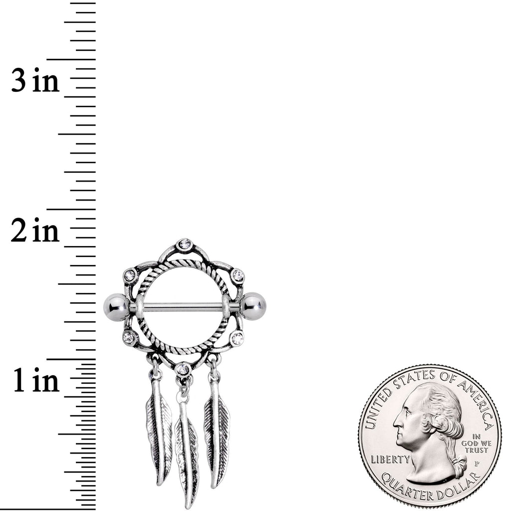 14 Gauge 9/16" Clear Gem Lotus Feather Dangle Nipple Shield Set
