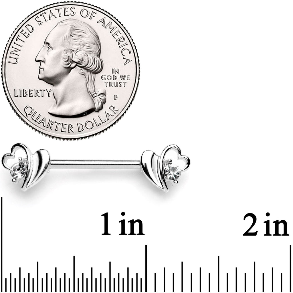 14G 9/16 Clear Gem Love Wave Barbell Nipple Ring Set