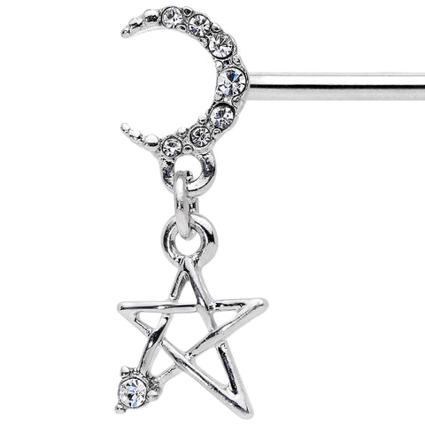 14 Gauge 9/16 Clear Gem Moon Star Dangle Barbell Nipple Ring Set