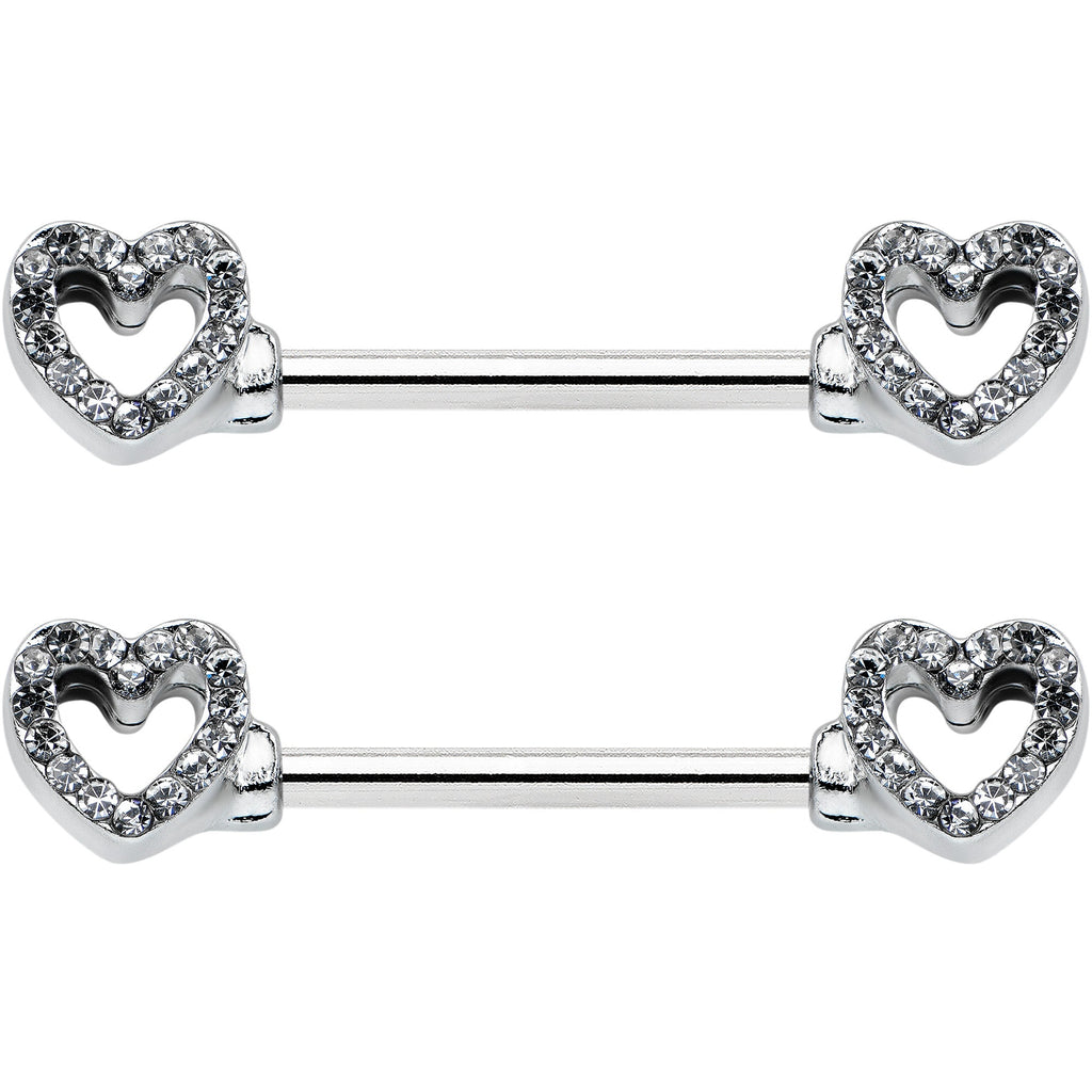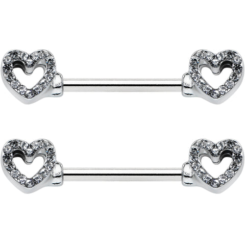 14 Gauge 9/16 Clear Gem Open Heart Valentine Barbell Nipple Ring Set