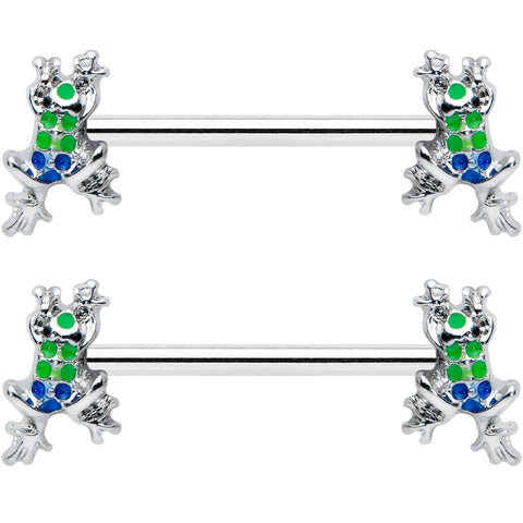 14G 9/16 Clear Gem Polka Dot Frog Barbell Nipple Ring Set