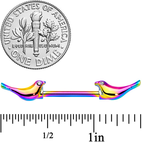 14 Gauge 9/16 Clear Gem Rainbow Bird Barbell Nipple Ring Set
