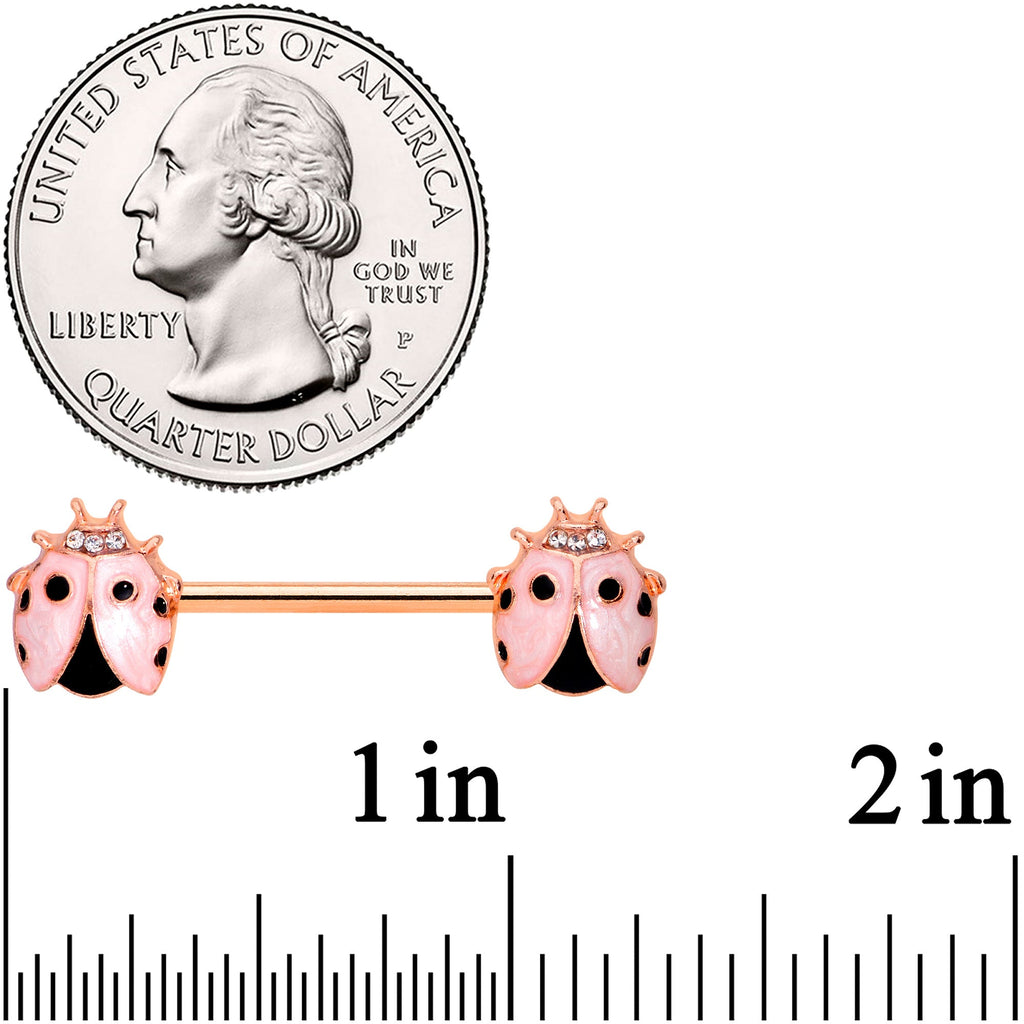 14G 9/16 Clear Gem Rose Gold Tone Lil Ladybug Nipple Ring Set