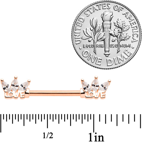 14 Gauge 9/16 Clear Gem Rose Gold Tone Love Barbell Nipple Ring Set