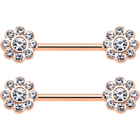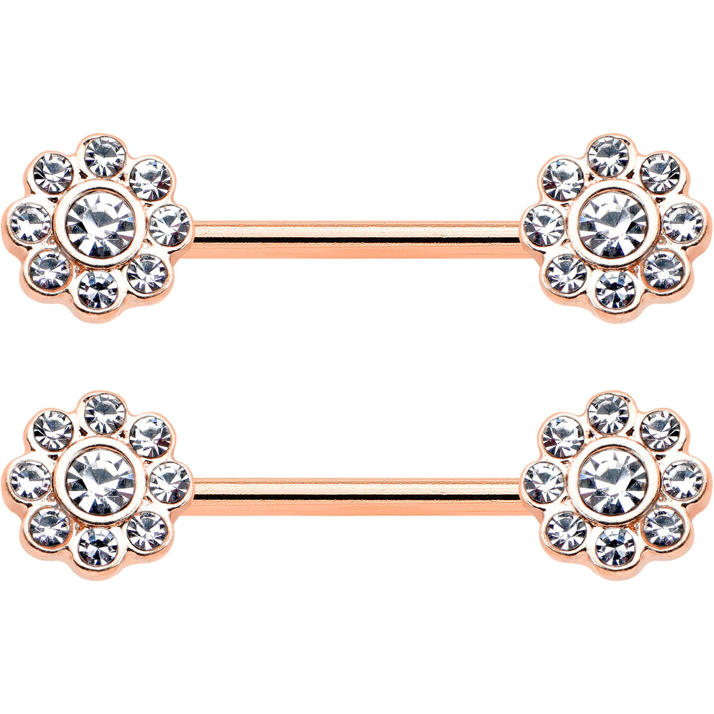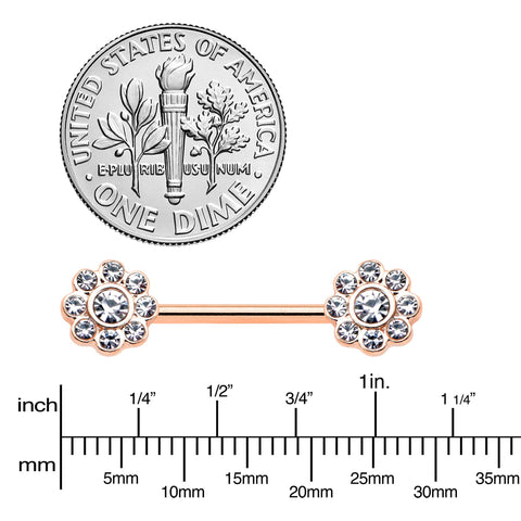 14 Gauge 9/16 Clear Gem Rosy Tone Whimsy Flower Barbell Nipple Ring Set