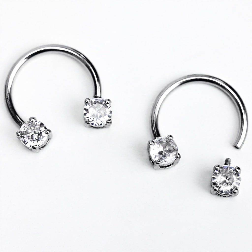 14 Gauge 9/16 Clear Gem Round Internally Threaded Horseshoe Nipple Ring Set