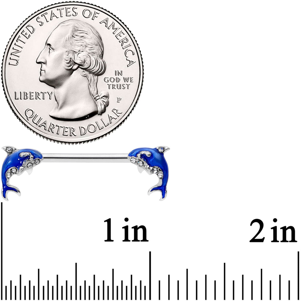 14 Gauge 9/16 Clear Gem Sea Blue Orca Whale Barbell Nipple Ring Set