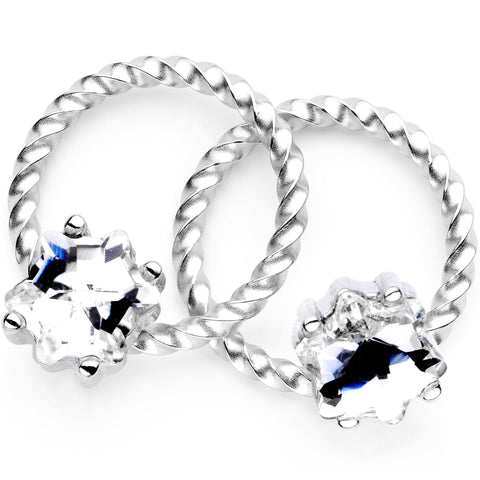 14 Gauge 9/16" Clear Gem Supernova So Twisted BCR Captive Ring Set