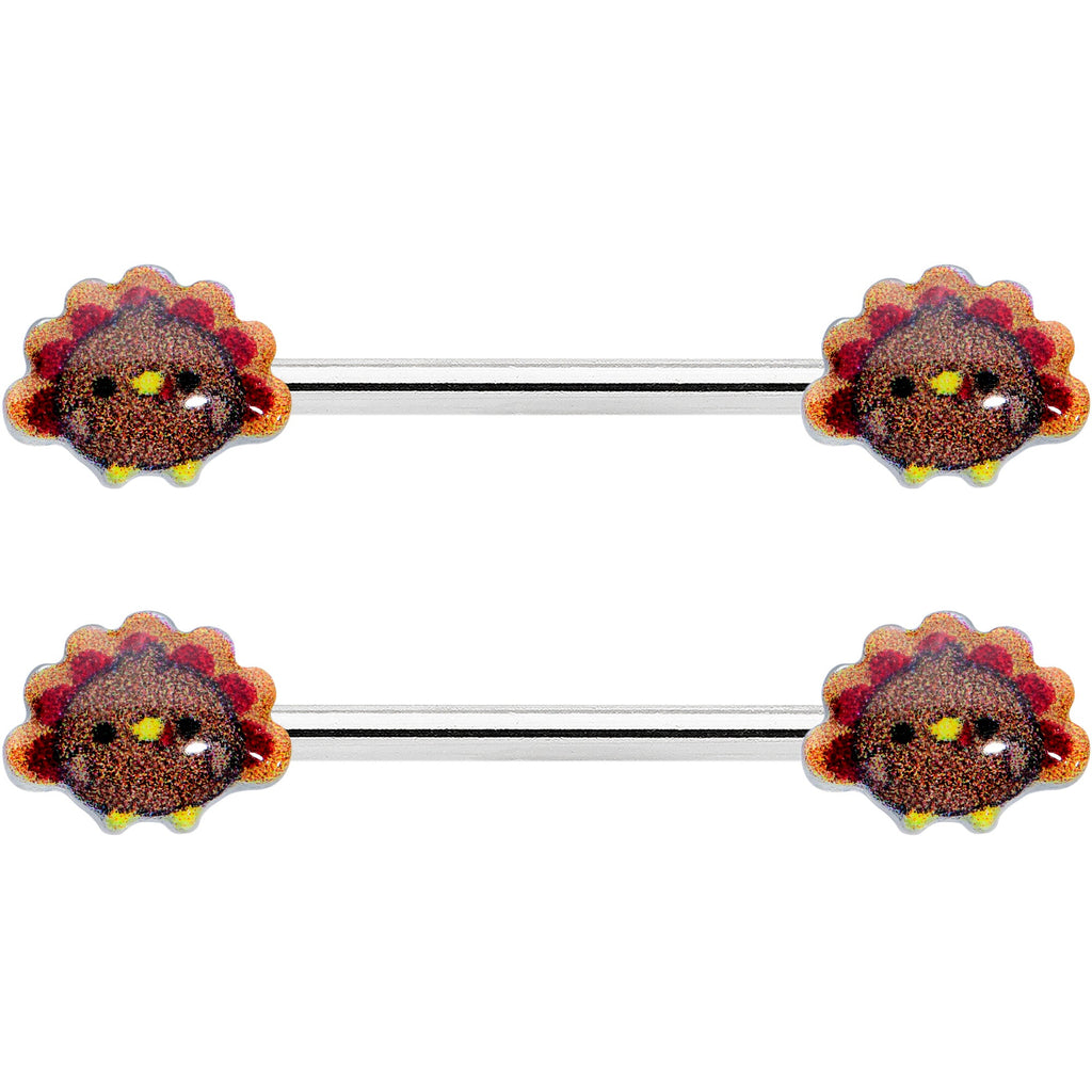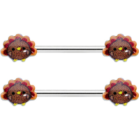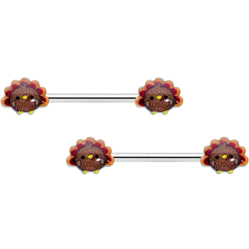 14G 9/16 Cute Colorful Turkeys Barbell Nipple Ring Set