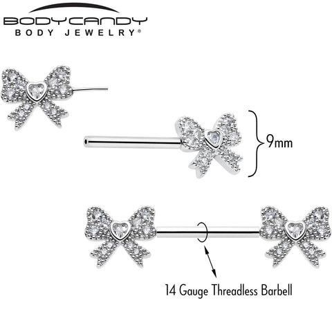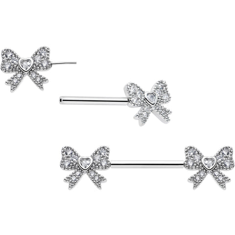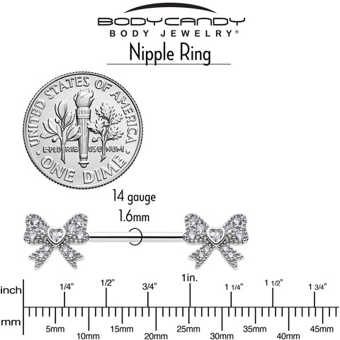 Tie Your Look Together with Sparkle & Style. Add a flirty twist to your piercing collection with this dazzling bow nipple ring set, shimmering with brilliant cubic zirconia stones for head-turning sparkle.
