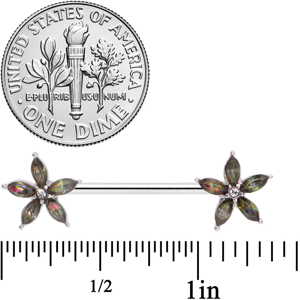 14 Gauge 9/16 Dark Aurora Gem Starry Flower Barbell Nipple Ring Set