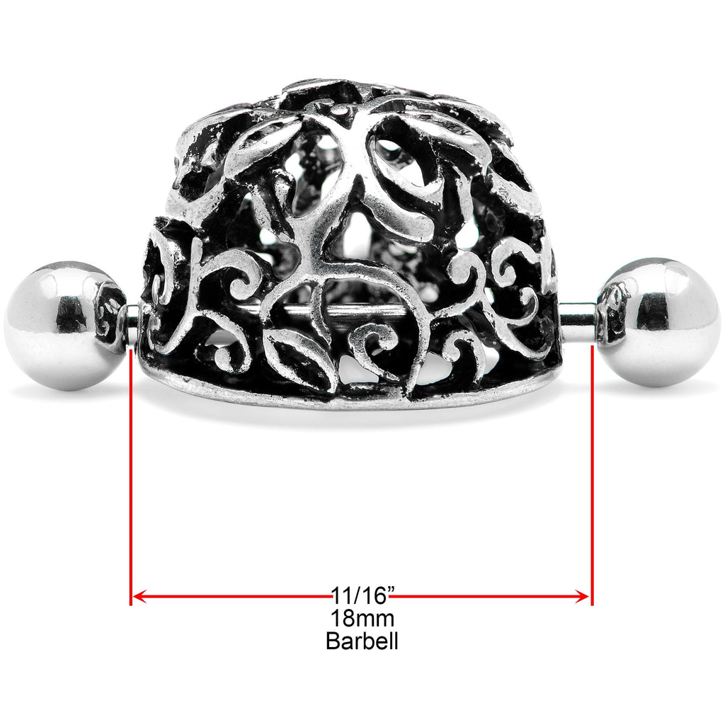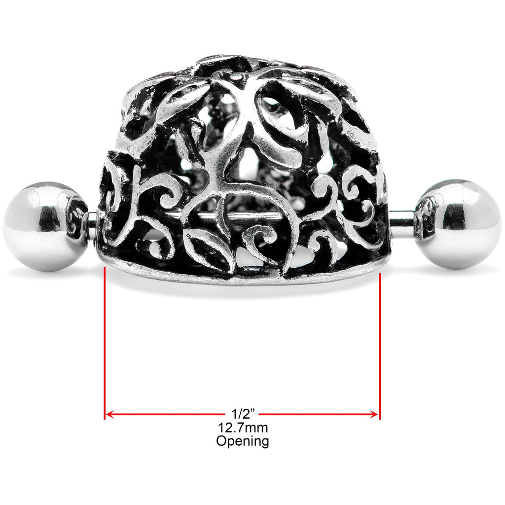 These vines are growing out of control, but they've come together to form a gorgeous set of shields for your 14 gauge nipple piercings. They have a 10mm width and a rise of 6mm, and framework designs that give them a bold look which is still delicately feminine. These nipple piercings are made with 14mm durable 316L surgical grade stainless steel straight barbells. Become one with nature when you let these vines wrap themselves around your piercings - they'll grow on you! Sold as a pair.Specifications