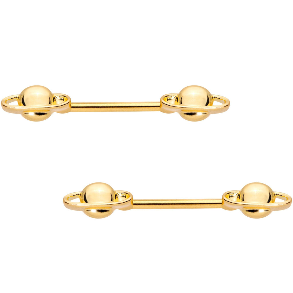 14G 9/16 Gold PVD Alien Spaceship Barbell Nipple Ring Set