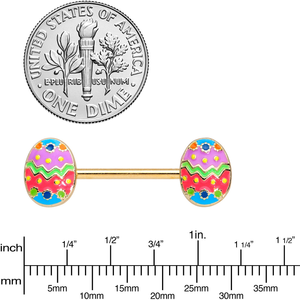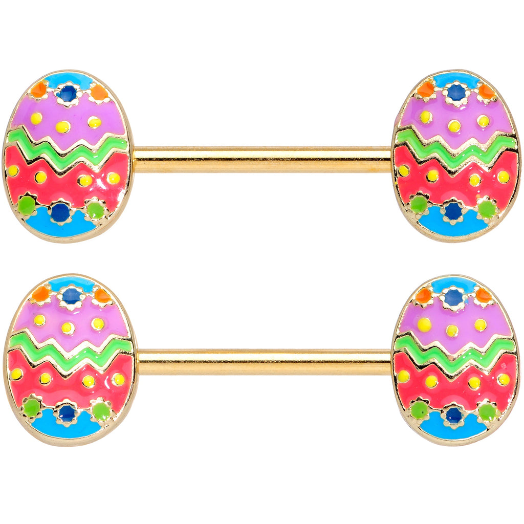 14 Gauge 9/16 Gold Tone Painted Easter Egg Barbell Nipple Ring Set