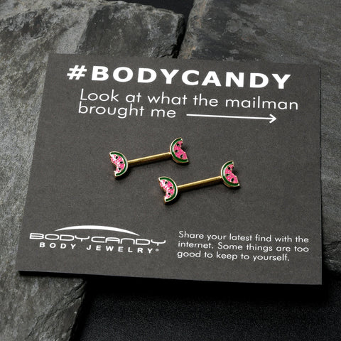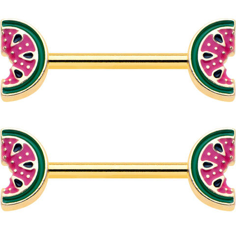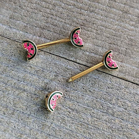 14G 9/16 Gold Tone Watermelon Bite Barbell Nipple Ring Set