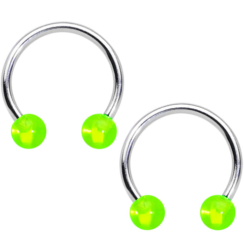 14 Gauge (1.6mm), 9/16" (14mm), 316L Surgical Grade Stainless Steel Straight Barbells, 9/16" (14mm) Surgical Grade Stainless Steel Circular Barbells, 5mm Acrylic Ball Ends, Sold as a Set of 4