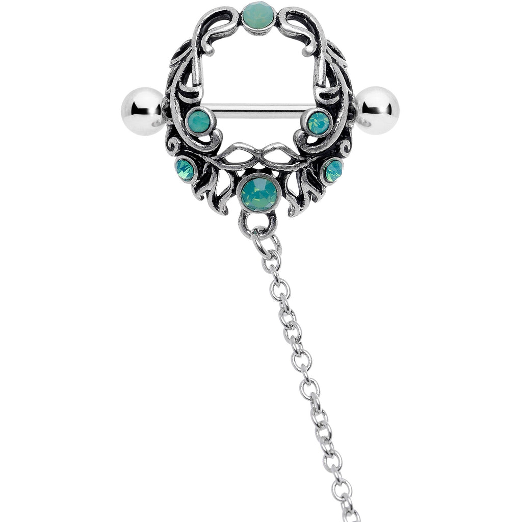 14G 9/16 Green Faux Opal Wreath Nipple Shield Dangle Nipple Chain