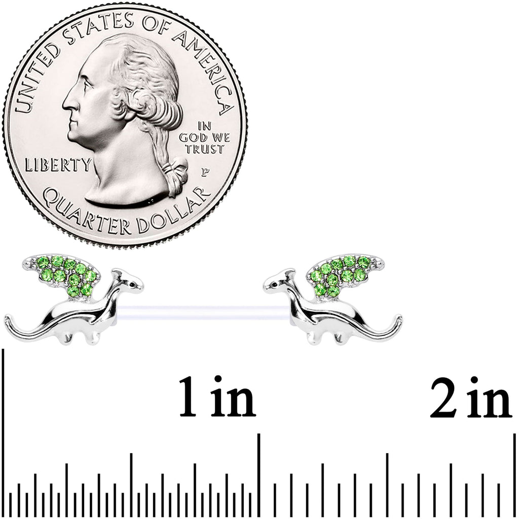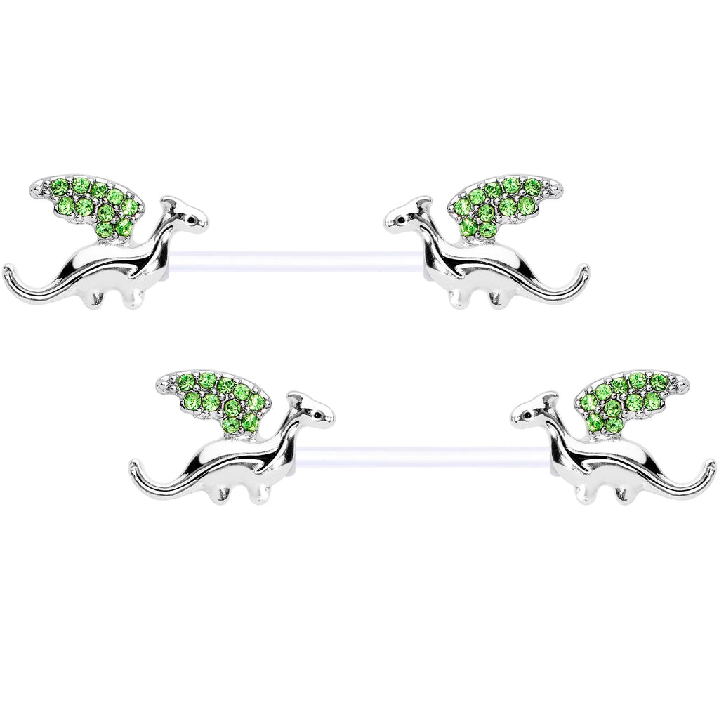 14 Gauge 9/16 Green Gem Bioplast Dragon Barbell Nipple Ring Set